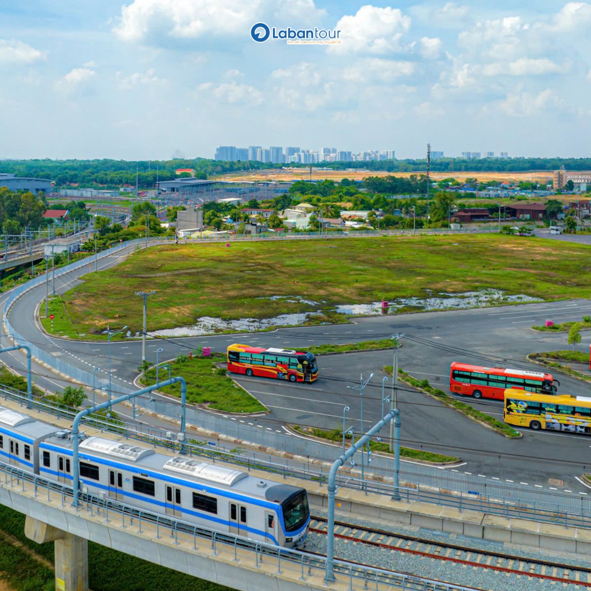Một lựa chọn mang tính thời đại cho du khách là di chuyển bằng Metro. Bạn có thể di chuyển đến Công viên nước Grand Park bằng tàu Metro tuyến số 1 (Bến Thành – Suối Tiên). Tuyến này bắt đầu từ Depot Long Bình (Thủ Đức, Quận 9) và kết thúc tại Bến Thành (quận 1).