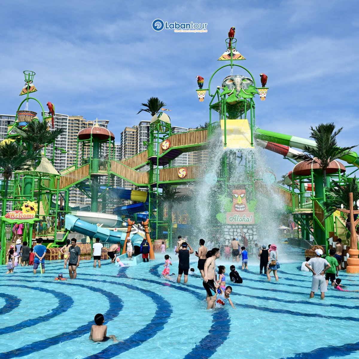 - Ốc đảo diệu kỳ: Với diện tích rộng lớn 1.680m², đây là thế giới riêng dành cho các “vận động viên nhí”. Khu vực này sở hữu 9 đường trượt mini được thiết kế với độ dốc vừa phải, hình ảnh ngộ nghĩnh, giúp các bé làm quen với nước và phát triển kỹ năng vận động dưới sự giám sát của đội ngũ cứu hộ.